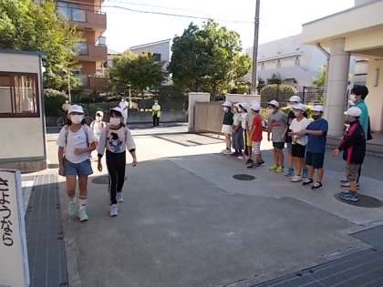 あいさつ運動の子どもたちです。人数が増えてきました。こんな運動が広がるって,すばらしいですね。