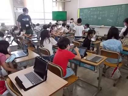 2年生のようすです。2組は,算数で九九に取り組んでいました。1組はパソコンを使ってドリルパークに取り組んでいました。九九には集中して取り組んでいましたし,パソコンは使いこなしていて,感心しました。
