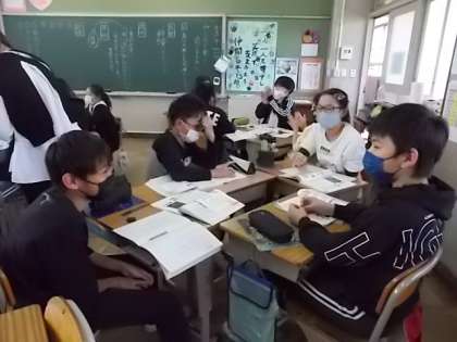 国語 公開日 2022/10/11 更新日 2022/10/11 6年 6年生の国語の授業のようすです。「みんなで楽しく過ごすために」という教材です。実際に6年生は企画しているようです。みんな友達の意見を聞き,自分の意見を言いながら,話をすすめています。