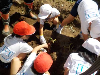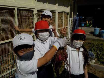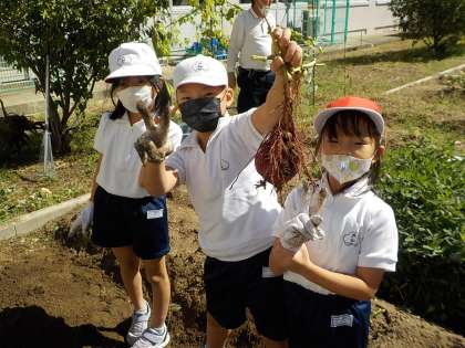 1年 生活 公開日 2022/10/11 更新日 2022/10/11 1年 5月に苗を植えたサツマイモの収穫をしました。大きなイモが土の中から出てきて,子どもたちは大興奮!!サツマイモの数を確認して,後日持ち帰りたいと思います。