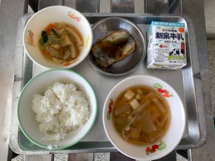 10月25日火曜日 今日の給食 本日のメニューは「豚汁・いわしのかば焼き風・キャベツの煮びたし・ごはん・牛乳」でした。
