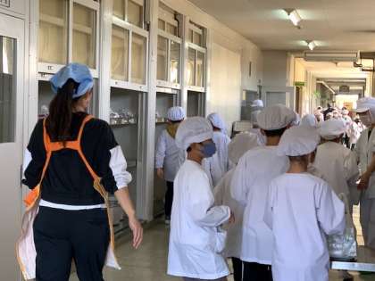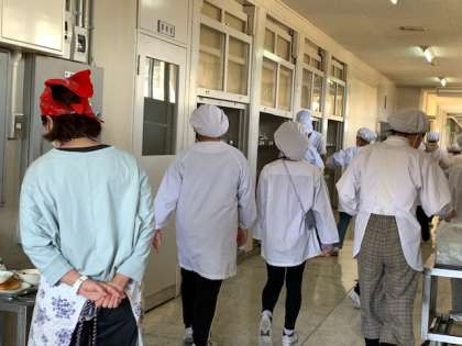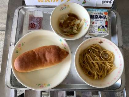 本日のメニューは「きのこスパゲティ・ホットサラダ・ミックスジャム・ミニミルクパン・牛乳」でした。