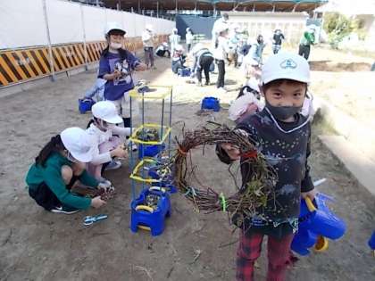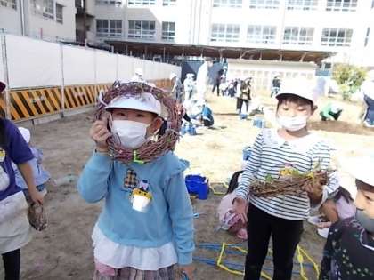 1年生 図工 公開日 2022/11/01 更新日 2022/11/01 1年 1年生が,生活科で育てていた朝顔のつるを使って,リースを作っていました。なかなか丸く形づくるのが難しく,技術職員さんに手伝っていただきました。このあと,かざりをつけて,かわいいリースになるのでしょうか。自分たちで育てた朝顔は,やっぱり捨てるのはしのびなく,こんな風にリースに生まれ変わるのはいいなあと思いました。