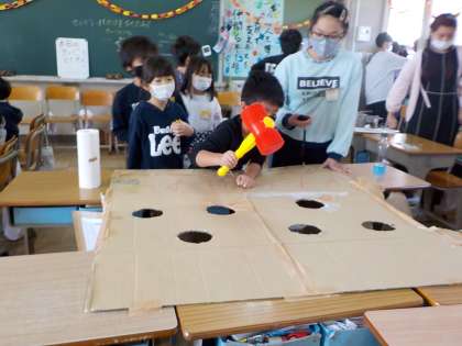 1年 大仙まつり 公開日 2022/11/08 更新日 2022/11/08 1年 11月7日 コロナ禍で大仙まつりを経験していない1年生のために,6年生のみなさんが大仙まつりをしてくれました。楽しいおまつりを考えてくれたお姉さん,お兄さん,ありがとうございました。