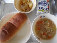 11月15日火曜日 今日の給食 本日のメニューは「さつま汁・お好み焼き・ごはん・牛乳」でした。