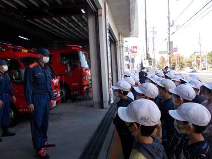消防署見学 3年生 公開日 2022/11/15 更新日 2022/11/15 3年 3年1組は、2時間目に消防署見学に行ってきました。 消防車や救急車を見学し、消防署で働く方々の普段の仕事について教えていただきました。