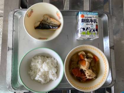 本日のメニューは「すき焼き風煮・焼きさば・ごはん・牛乳」でした。