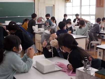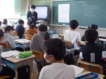 4年1組は社会、4年2組は理科、4年3組は算数の学習に取り組んでいます。