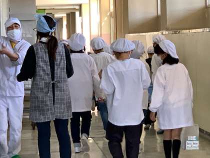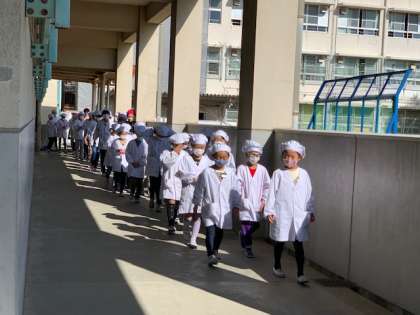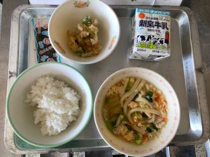 本日のメニューは「親子うどん・春菊のかき揚げ・味付けのり・ごはん・牛乳」でした。