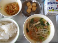 12月1日木曜日 今日の給食 本日のメニューは「トック・ビビンバ風・ミニフィッシュ・ごはん・牛乳」でした。