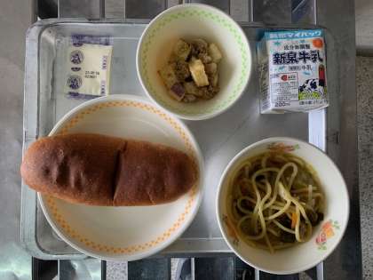 2月15日水曜日 今日の給食 本日のメニューは「しょうゆラーメン・まめかりんとう・ソフトチーズ・黒糖パン・牛乳」でした。