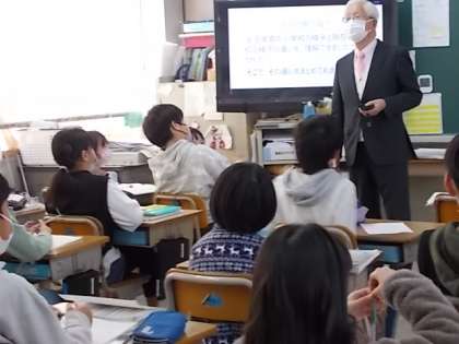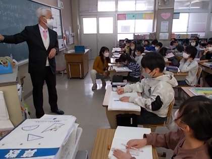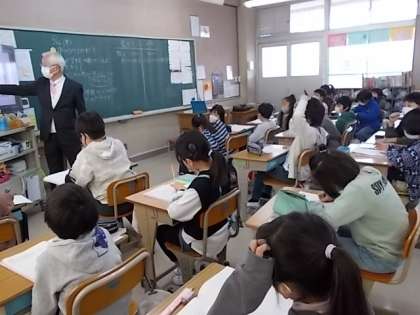 今日は、堺市小中学校の元校長先生である中田先生に、出前授業を行っていただきました。3年生はいま、昔と今のくらし について学習しています。先週の土肥先生に続き、「さかいの学校」について学びました。市町村合併や、ニュータウンの造成によって今の小学校の数になったことや、昔の学校の建物は木造だったこと、給食の牛乳は脱脂粉乳だったことなど、楽しく学ぶことができました。