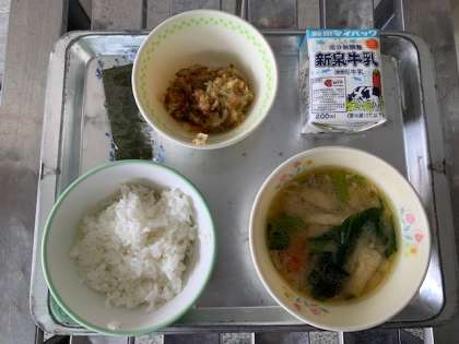 3月2日木曜日 今日の給食 本日のメニューは「五目汁・お好み焼き・味付けのり・ごはん・牛乳」でした。