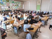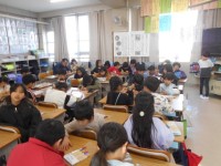 色とりどりの工夫された貯金箱を教室前に展示しています。