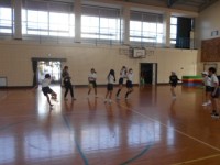 ソフトバレーボールを2つ使ってのドッジボール。自然に熱が入ります。