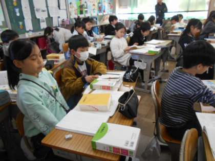 2組では、国語の時間で、ことわざ・慣用句を調べていました。国語辞典を使っていろいろな言い回しを学んでいました。
