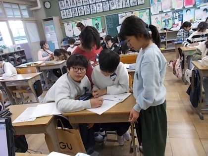 問題が提示されると、さっそく自力で解決方法を考える子もいれば、すぐに数人の友だちと集まって意見を出し合うグループも。