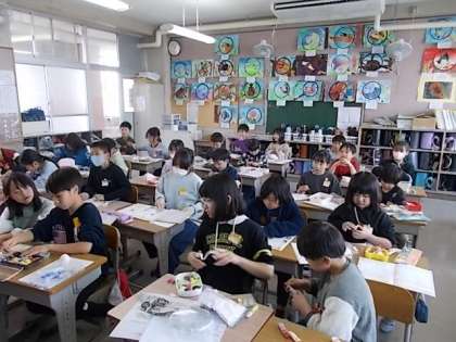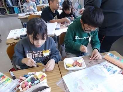 毎日見に来ても楽しいです!校外学習の時にお家の皆さんに作っていただいたお弁当がお手本になっているということです。夢中で制作する手には、絵の具もつきました。