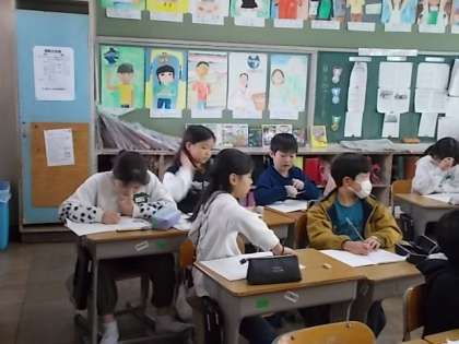 今日はお話を読んだ感想や自分の考えをノートに書き込んでいました。