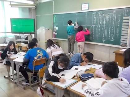 5年2組は国語で伝記の学習をしていました。