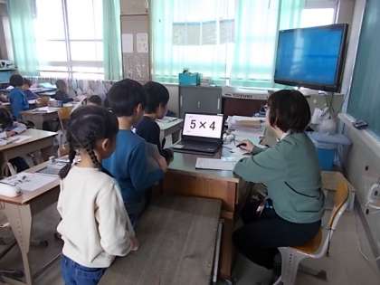 その傍らで一人ずつ九九の練習!先生に近くで聞いてもらうと、ちょっぴり緊張するね!