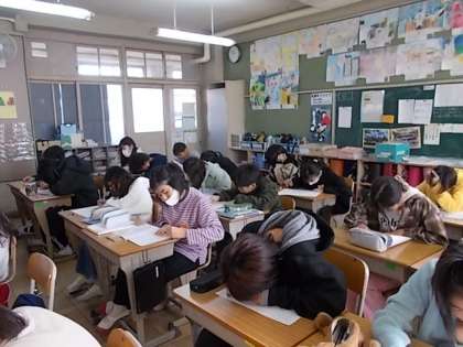6年1組は算数の復習をしていました。