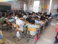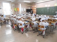 2年生の朝の様子です。しっかりと先生の話を聞くことができています。