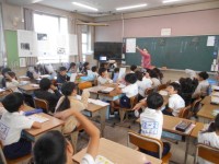 2年1組は廊下からでも騒々しくなっていました。1時間目に学習したプリントを回収し...