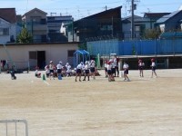 木曜の1時間目は、2年生の合同体育です。今日は昨日よりもやや暖かさを感じる運動場...