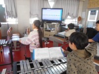 3年2組は音楽の時間でした。音楽室には楽器がずらりと並んでいます。それぞれが担当...