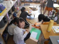 4年生の国語の学習です。大道具,音楽,演技など,グループに分かれ学習をしています...