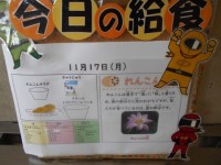 今日の給食は・ごはん・牛乳・鶏なんばんうどん・いわしのみりん干し・もやしのごま風...