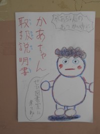 なんとも愛くるしいイラストと共に紹介されている本。図書委員会の児童が廊下に貼って...