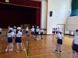 学校に戻って、最後お土産をいただきました。紙で作った遊べるおもちゃです。多目的室...