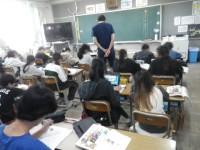 英語で自己紹介をしていました。めあては、NS(ネイティブ・スピーカー)の先生にしっかりと伝えることです。