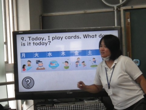2組は外国語活動,「今日は何曜日?」の学習をしていました。