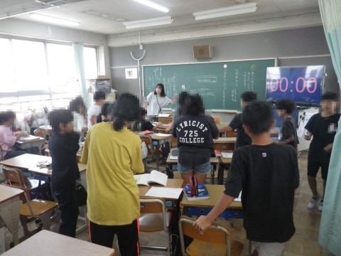 2組は国語,自分で作った「たずねびとのポップ」を伝え合う活動をしていました。