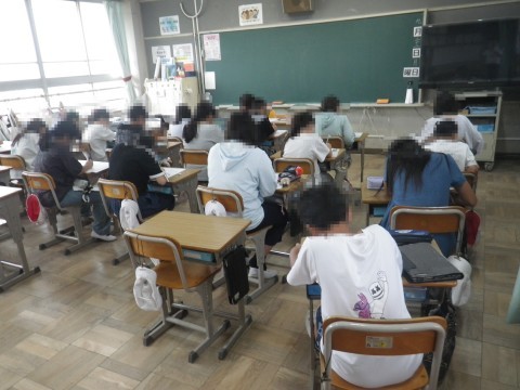 1組は国語,これから行う宮沢賢治の読書座談会の学習の進め方を聞いていました。