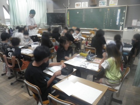 1組も2組も国語,読書座談会でやまなしに込められた宮沢賢治の思いについて話し合っていました。