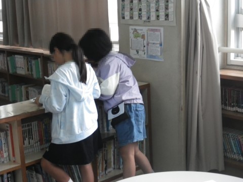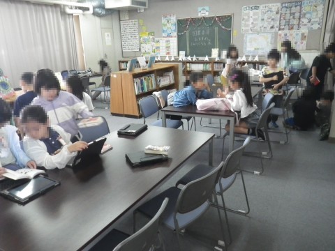 1組は図書,明日の朝読書の本を探して,読んでいました。