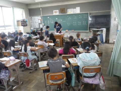 2組は算数,かけ算のひっ算をマスターしようと問題を解いていました。