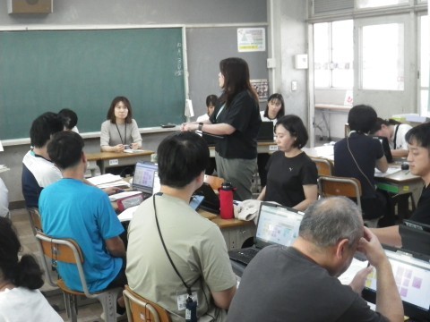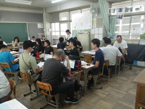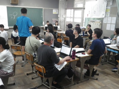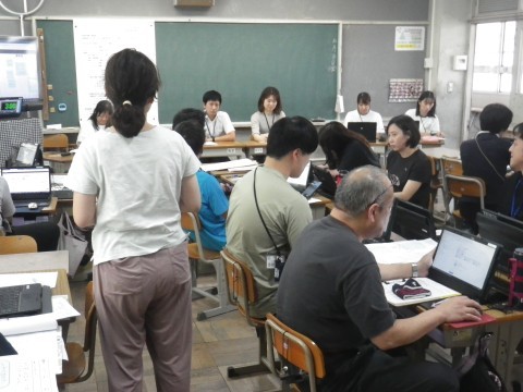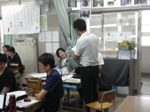 4年生の研究授業の後,先生たちは授業を見た反省会を行います。各グループで授業を見た感想を話し合った後,それを出し合いました。