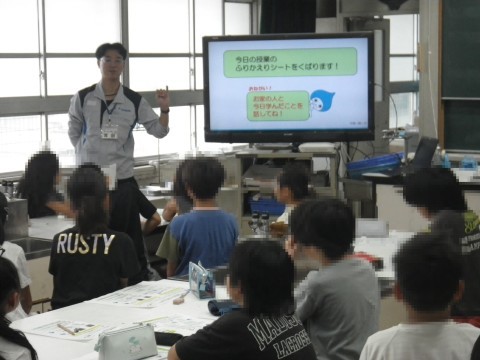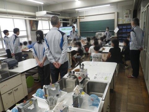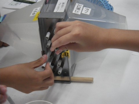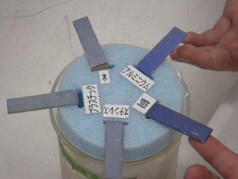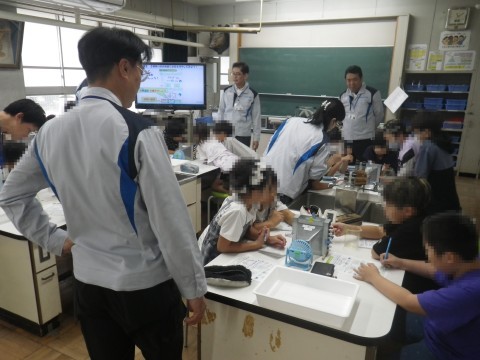 1組,2組ともにダイキン工業の理科実験授業を受けました。エアコンの仕組みを教えていただき,実際に実験しました。銅とアルミニウムの熱伝導率を実験した後,実際にミニエアコンを使って,空気を冷やします。26℃の空気の温度があっと言う間に19度まで下がりました。目の前でエアコンの仕組みを知り,子どもたちは驚いていました。