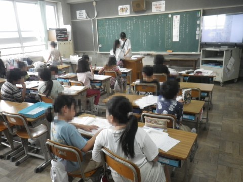 1組は国語,ちいちゃんのかげおくりで,心に残ったことを書いていました。