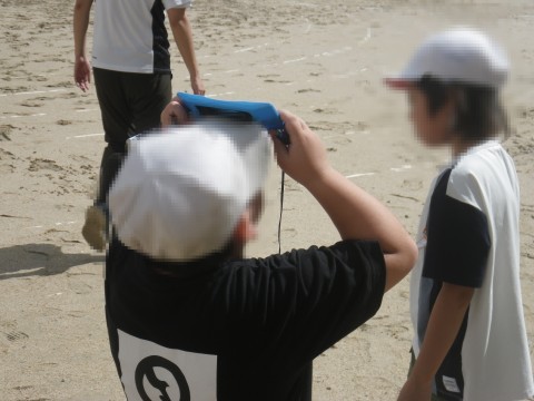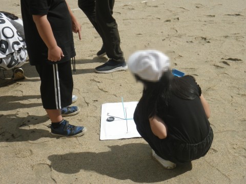 2組は理科,遮光版で太陽を見たり,かげの動きを記録して,太陽の動きを調べていました。