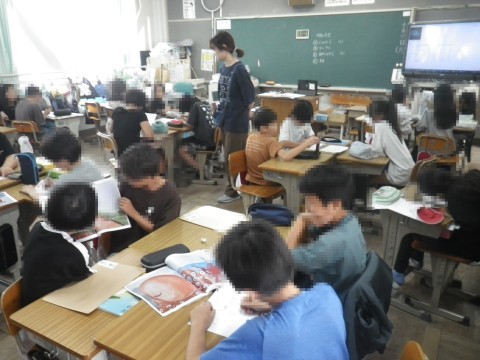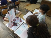 1組は国語,学習したことを2年生に伝える準備をしていました。