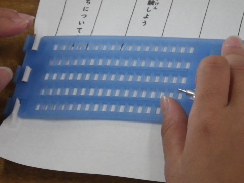 1組は総合的な学習で,視覚障がい者の方へのかかわりの中で,点字に挑戦していました。