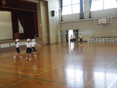 2組は体育,ミニバレーボールをしていました。