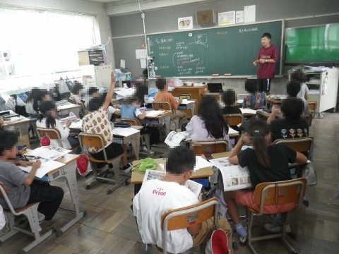 2組は社会,店で商品のちんれつについて話し合っていました。
