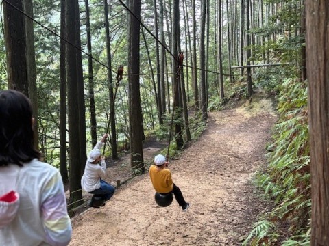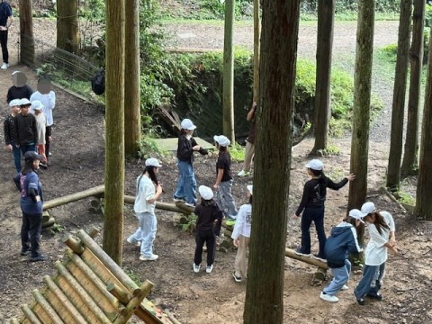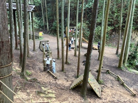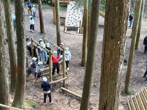 アスレチックで遊びました。朝の雨で使用できるか心配でしたが,遊ぶことができて子どもたちもとても楽しそうでした。